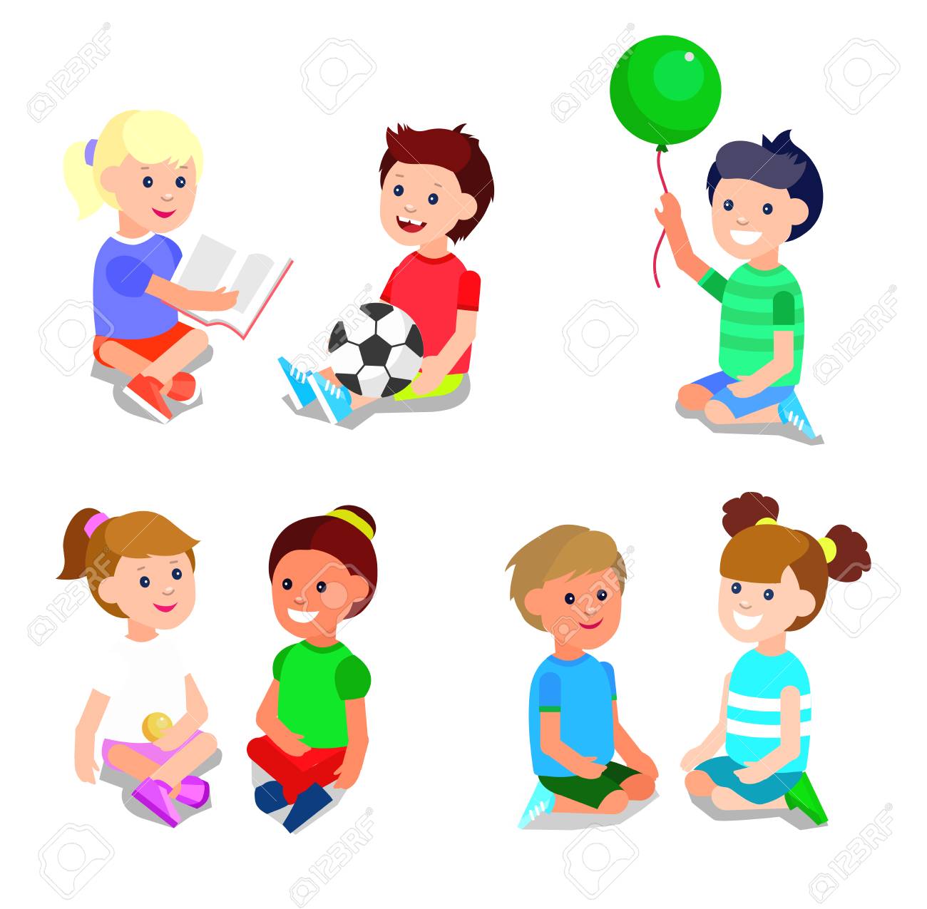 ボールと遊ぶかわいいベクトル文字子供は本を読みます 元気な子 幸せな子供のイラスト 詳細なキャラクターの子 ベクトルお祝い子供の日の楽しい子 のイラスト素材 ベクタ Image 57446239
